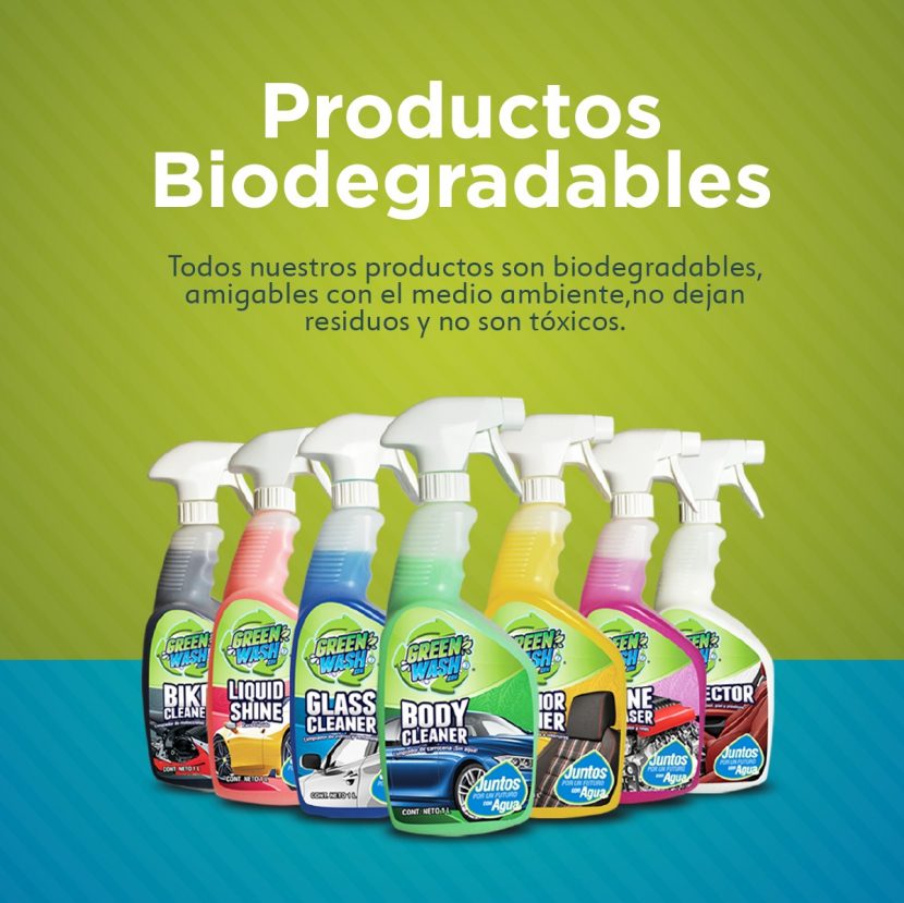 Y por si fuera poco, en Wazbio lavamos tu auto con fórmulas biodegradables especiales para cada auto parte. Con esto logramos un terminado de lavado mejor que con agua. El auto quedará brillante y protegido solo con el lavado, sin usar una sola gota de agua para lavarlo.